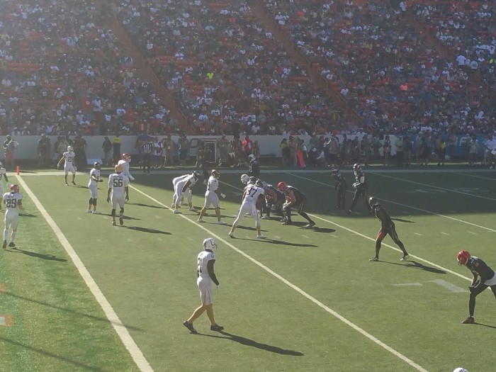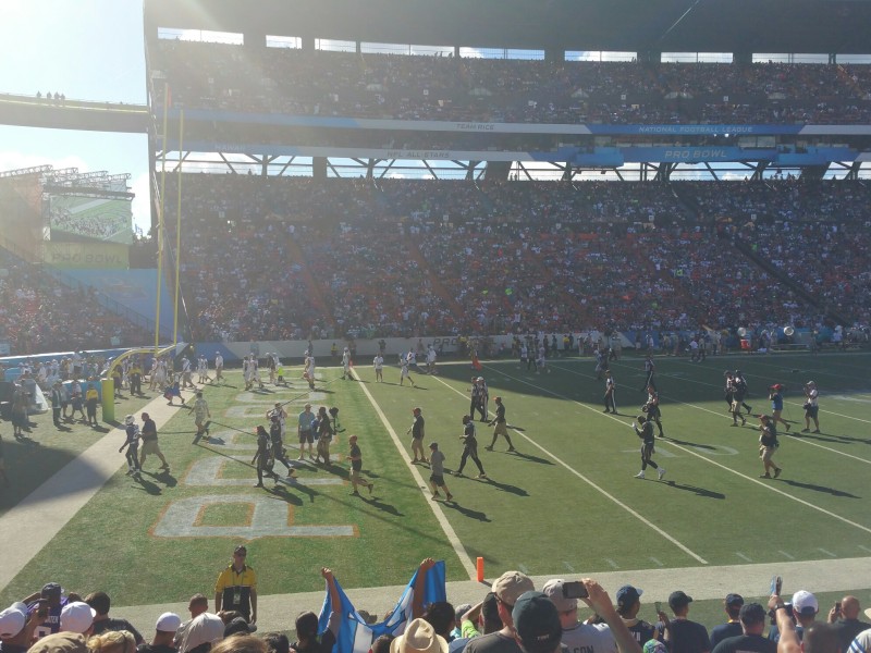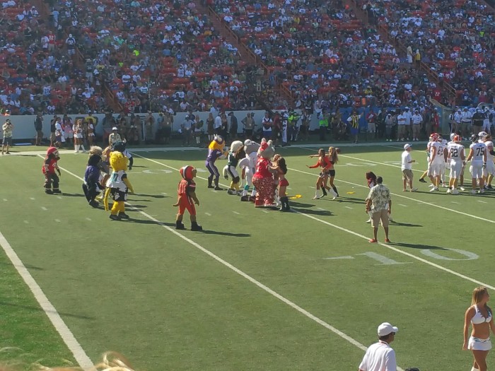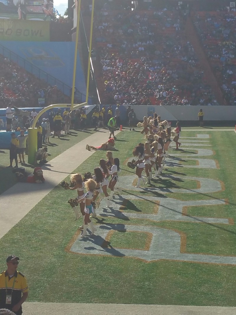 Scenes from the 2016 NFL Pro Bowl! February 1, 2016 From Special Correspondents Allan Ng and Rachel Kong Mascots versus Cheerleaders at the Pro Bowl! Pro Bowl warm ups ending. Play from early in the Pro Bowl. Pro Bowl Cheerleaders! Related AFC East AFC North AFC South AFC West NFC East NFC North NFC South NFC West