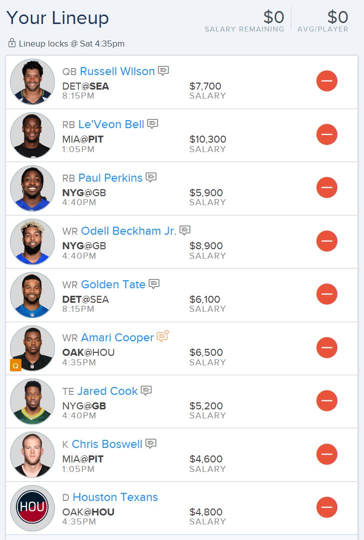 So without further to do, here are my favorite cash lineups for FanDuel, Draft Kings, and Yahoo! DFS, plus a few others suggestions you might consider for your lineups.