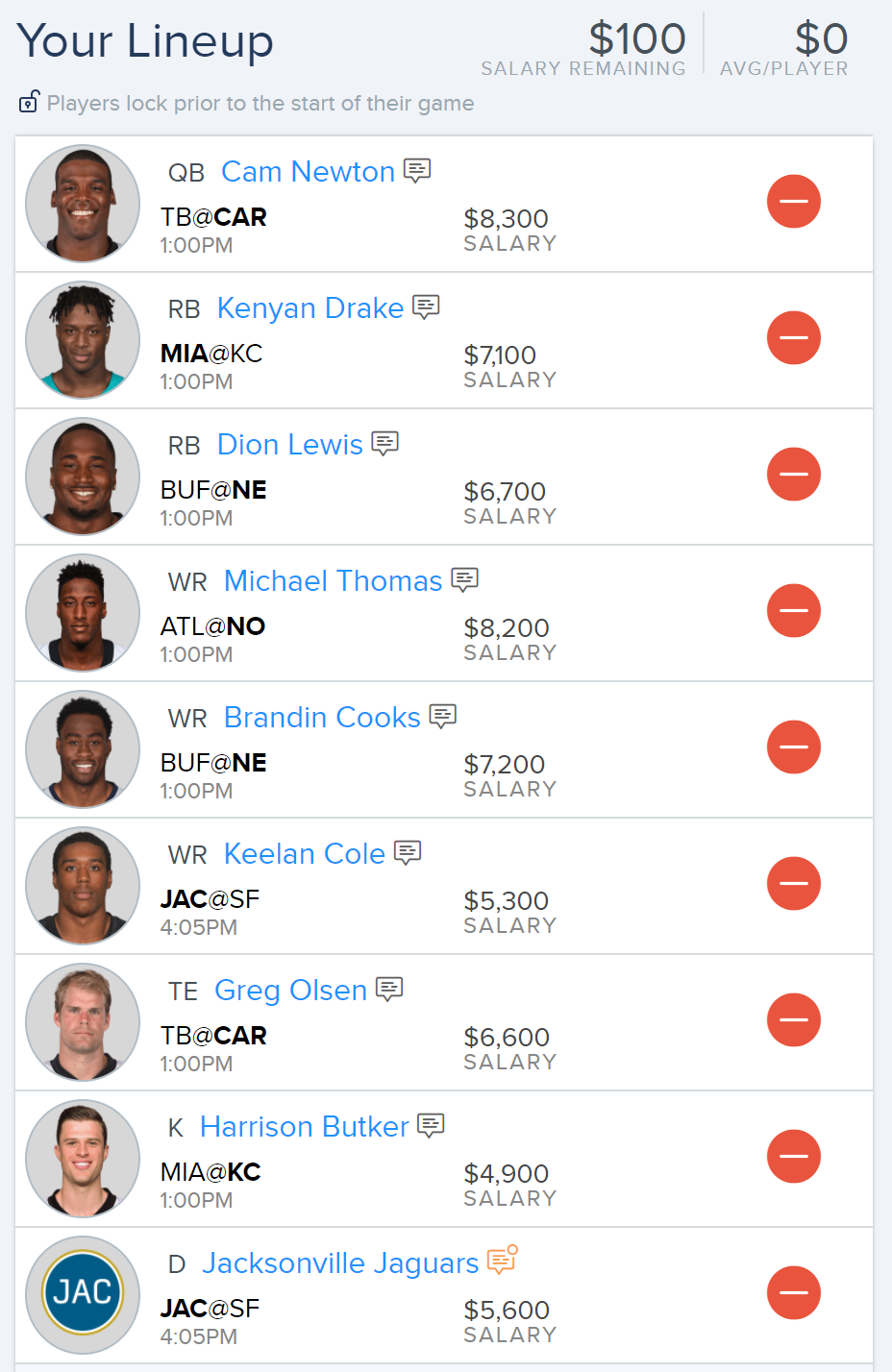 Feel free to use any of the players that I’ve selected on one site in any other site if you have cap space.