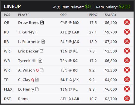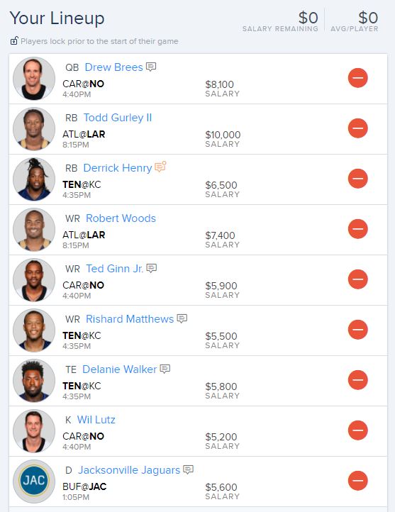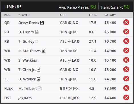 - For Draft Kings, try to target at least 2.5 fantasy points per $1000 spent.