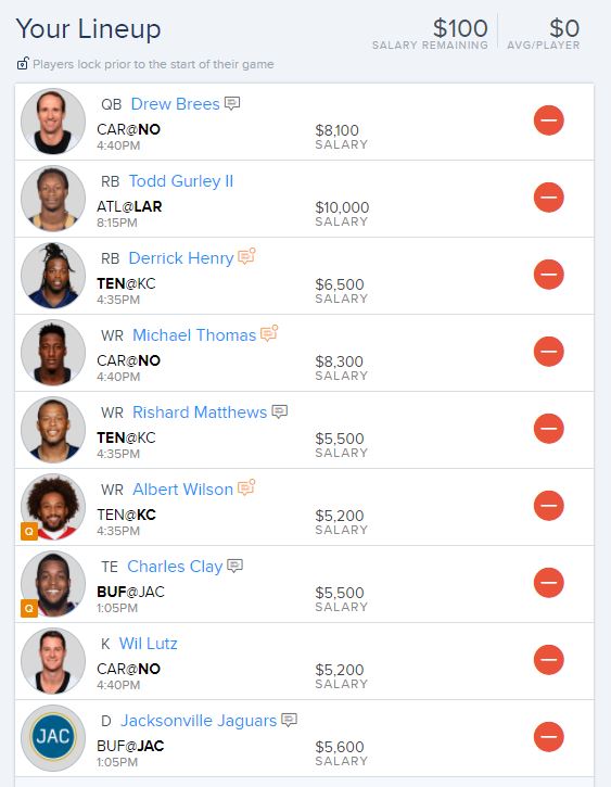 Week 17 worked out well as we cashed on almost all the lineups we suggested, meaning we’re still cashing at over a 75% rate this season! We got short slate for the Wild Card Weekend, but don’t worry, we got you covered.