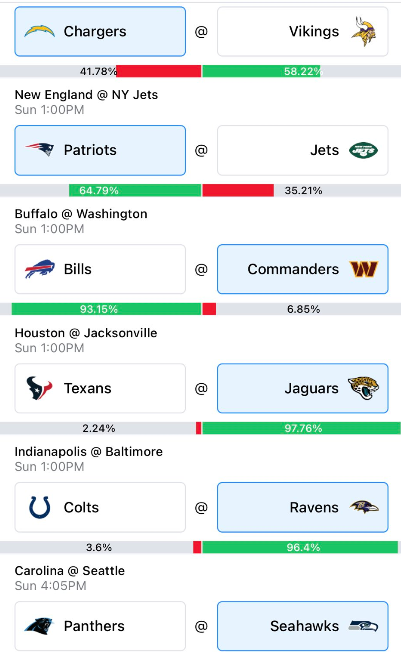 Speaking of the Chargers, what do you know they lost yet another game where they’ve led in the 4th quarter. And you can’t blame that defense forever. At some point there need to be conversations about the anti-clutchness of Justin Herbert. I’m taking the Vikings in part because Cam Akers can give that running game a much needed boost and because they are at home.