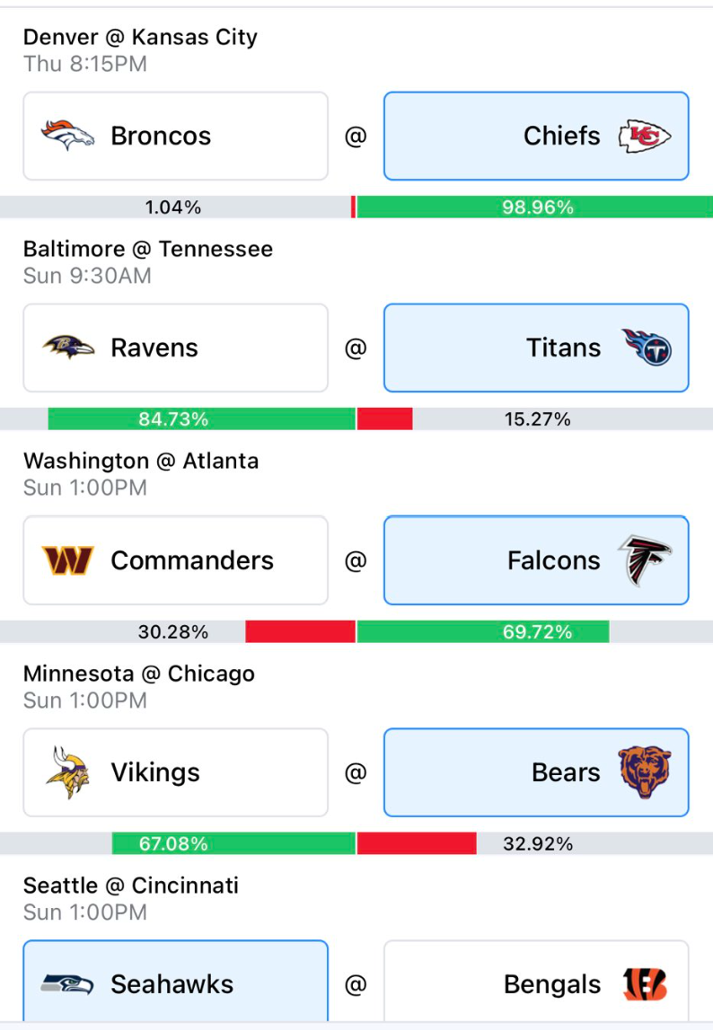 Wait, is this really week 6? The season is moving way too fast. Teams are starting to come into form and we’re seeing who has what it takes to make the playoffs and who doesn’t. Some tight games this week will make for an interesting pick set. I’ll be in person for the Falcons and WFT game Sunday and then home for the flexed Lions v. Baker game late. Should be a fun weekend of games.