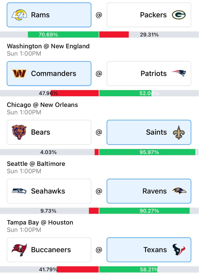 It’s not like the Saints are great, but they’ve been averaging just under 30 points per game since Alvin Kamara returned from suspension. The Bears on the other hand have been pretty bad all around on defense, allowing the 3rd most passing yards and 5th most points per game. On top of that, they have Tyson Bagent starting another game, which doesn’t give the Bears offense much upside against a Saints defense that’s allowed the 5th least yards per game to opposing teams and has the 5th most takeaways this season. Lock in the Saints.