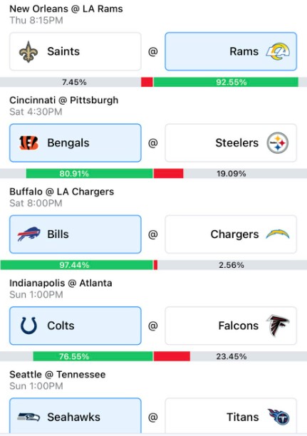 We’re closing in on the playoffs. Teams are being eliminated and locking up. We’re not to the point where teams are resting but it’s getting close. Lions over Vikings for the division. Let’s gooooooo.