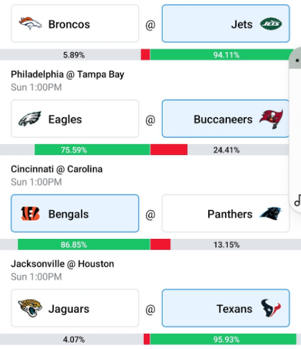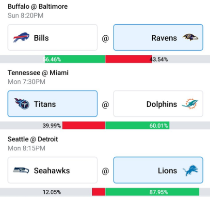 The Bills have scored the most points per game (37.3) and Josh Allen is playing some of the best football of his career, while James Cook has finally broken out as the RB1 we all thought he could be in Buffalo. The Bills are undefeated and heading over to play the Ravens, who managed to lose to the Raiders in Week 2 and allowed the Cowboys to score 19 straight points in the 4th quarter in Week 3 while narrowly eking out a win. Lamar Jackson can get hot any time, and Derek Henry seems revitalized in Baltimore, but no team is rolling more than the Bills. I like the potential upset here.