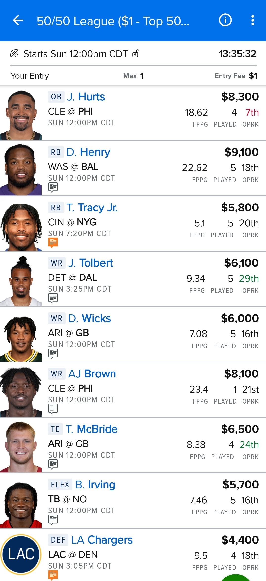 - The Philadelphia Eagles are coming off a bye healthy and with both of their top WRs back, AJ Brown and Devonta Smith. And they get to face the struggling Cleveland Browns, who just let dual threat Jayden Daniels throw for 238 yards and rush for 82 yards in Week 5. I’m liking all of the Eagles passing offense this week, but in particular Jalen Hurts, who’s priced is depressed due to recent poor performances when he was without his top 2 receiving options. AJ Brown also appears to have moderately depressed pricing across industry, so I like playing him too.