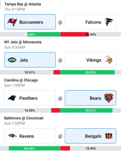 The Buccaneers had a weird slip up against the Broncos in Week 3, but have otherwise been incredibly solid against the Commanders, Lions and Eagles. The Falcons have been inconsistent on offense and had to rely on 4 FGs, including Younghoe Koo’s career record 58 yarder. Can the Falcons pull it out? Sure they could, but the Buccaneers have been much more consistent, so I like the potential upset here.