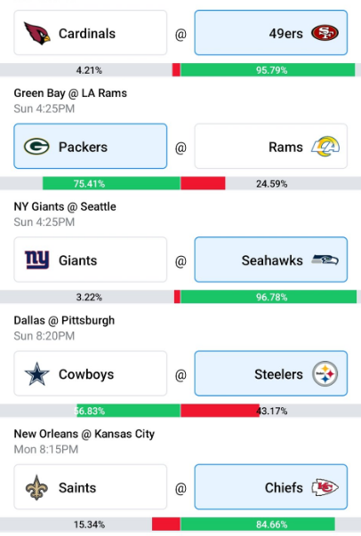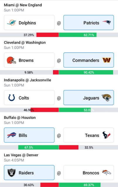 Speaking of Buffalo, they are no longer unbeaten after running into a buzz saw in Baltimore. And Houston won but really struggled against Jacksonville. We’ve had the classic letdown game, the Bills will win in a classic bounceback situation.
